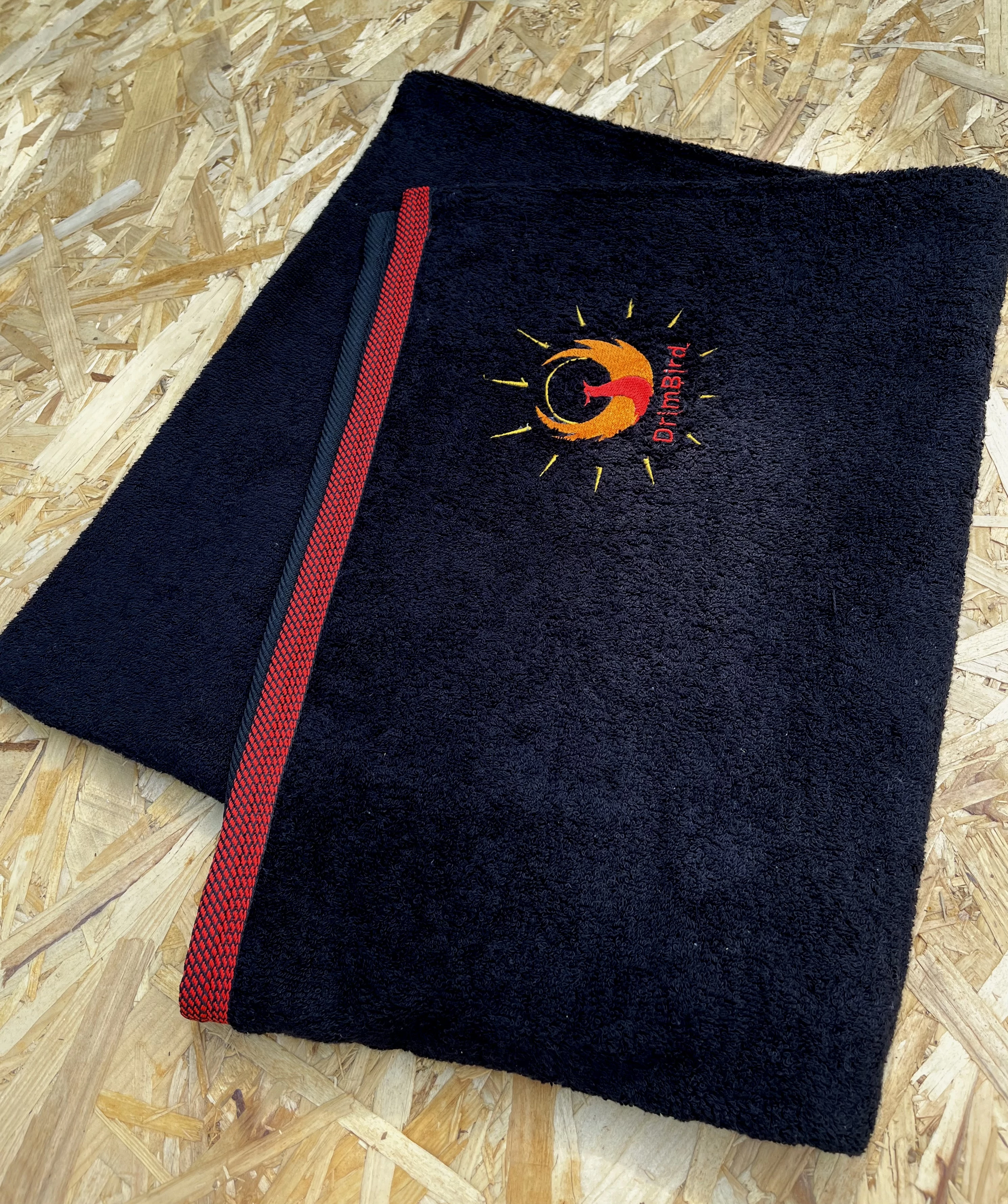 ClassicBlack (fekete pamut legyezős törölköző, piros szegéllyel)