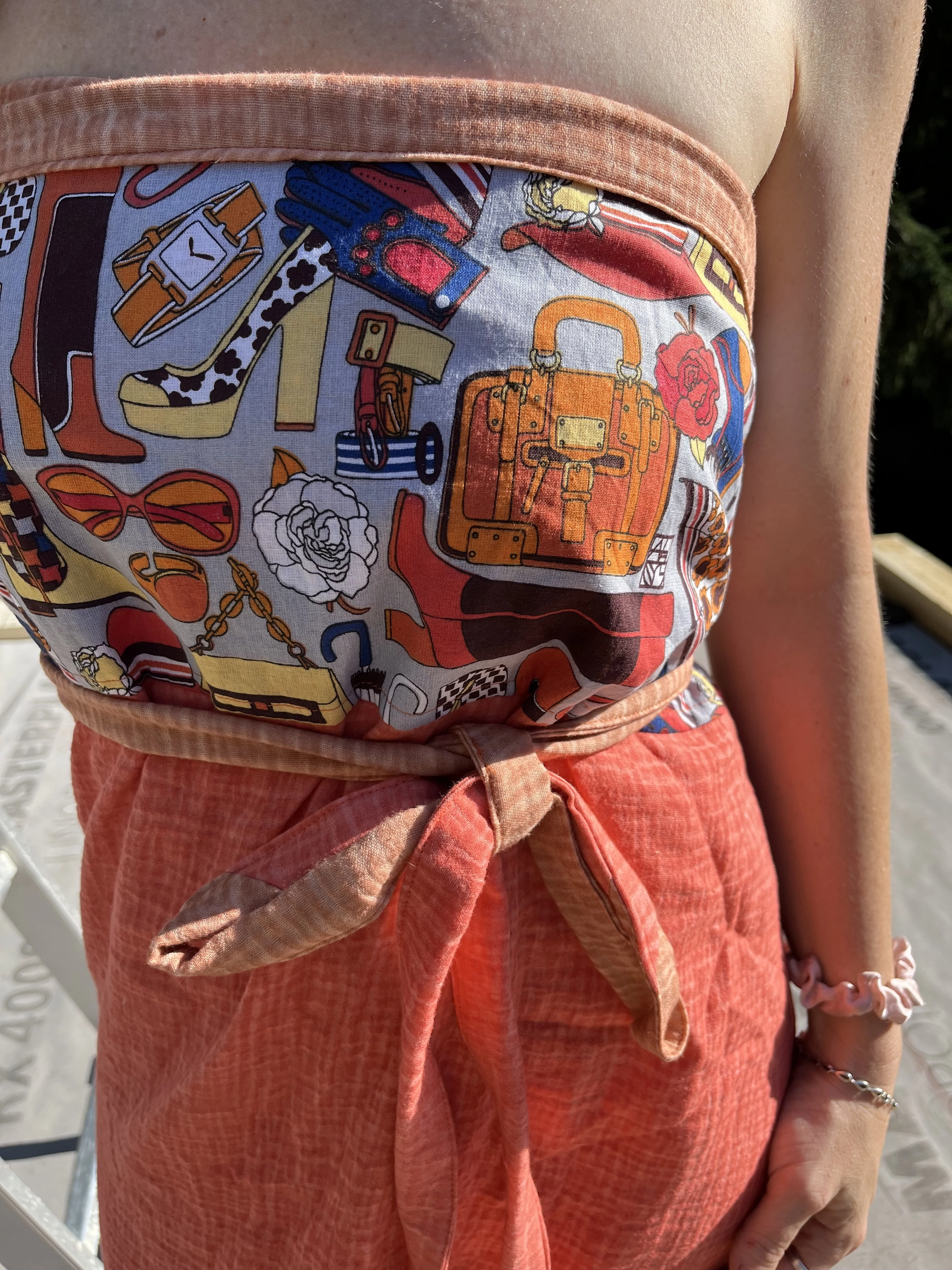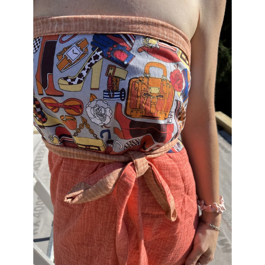 Díva (mintás, narancs egyrészes pamut szaunaruha)