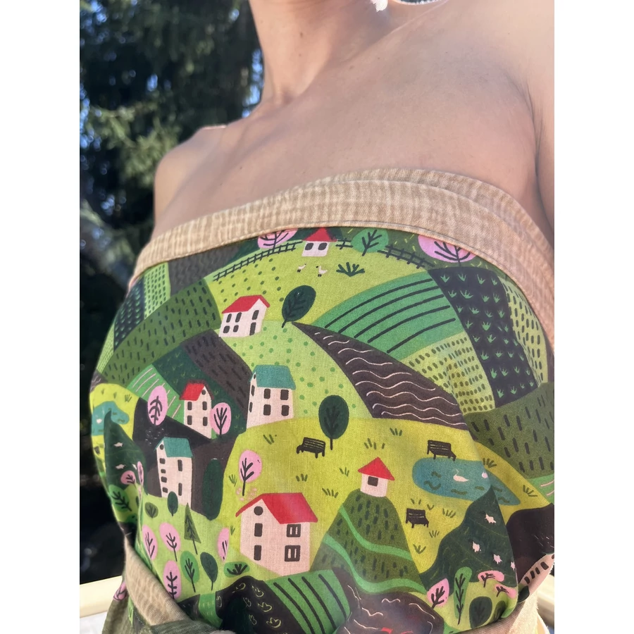 100% természetes pamut anyag – bőrbarát, nem tartalmaz szintetikus szálakat. Kiváló választás mindazok számára akik a természetes anyagokat részesítik előnyben. Jól tűri a magas hőmérsékletet a szaunában, pamut légáteresztő tulajdonsága segíti a hőszabályozást.