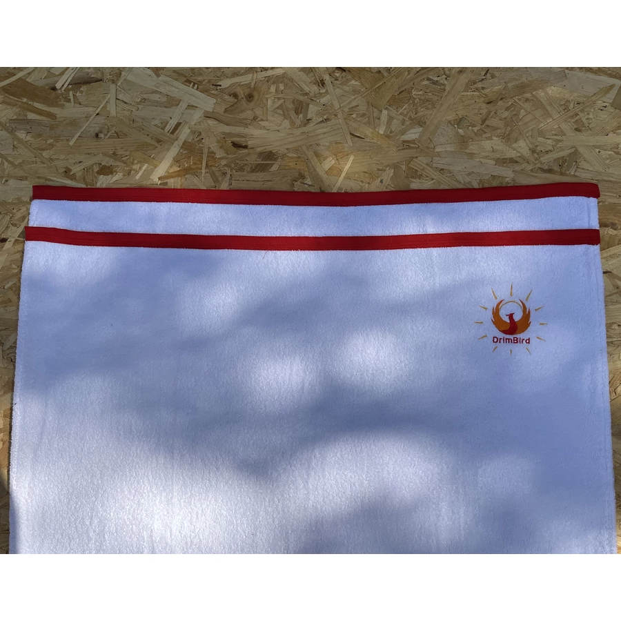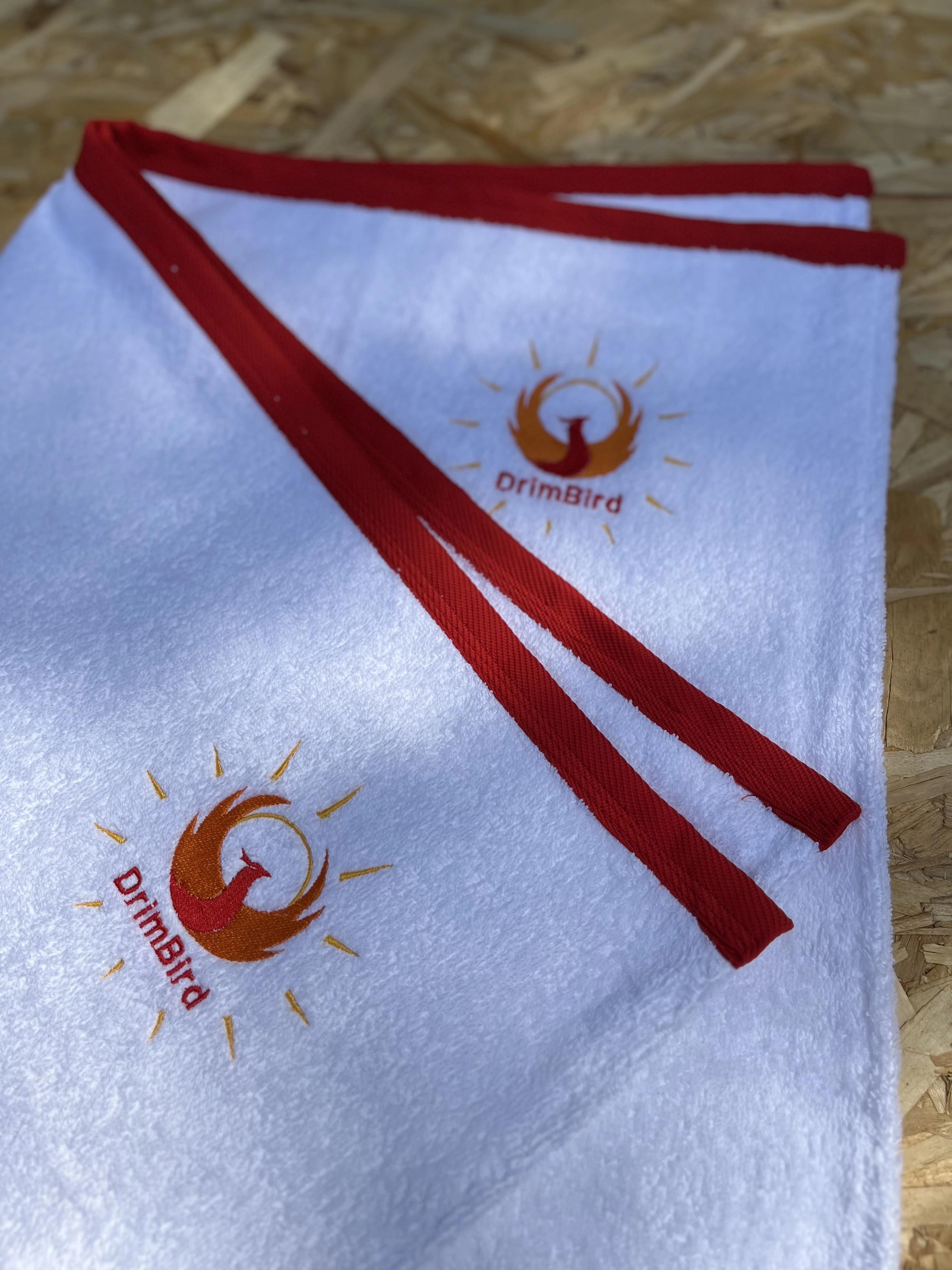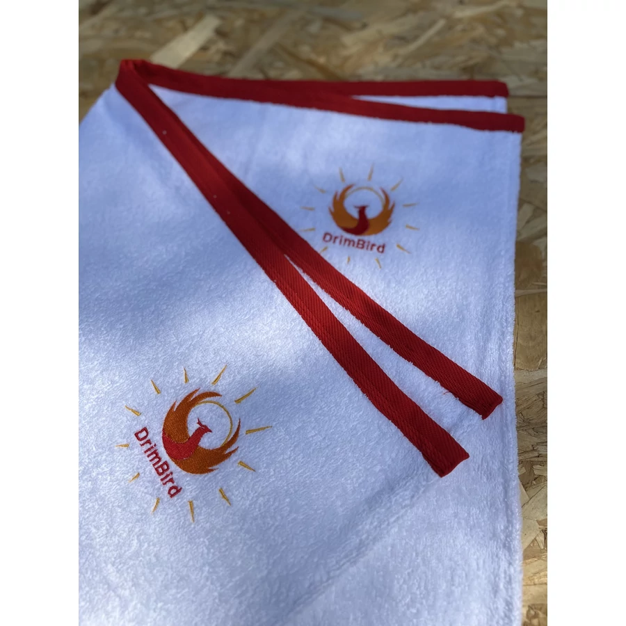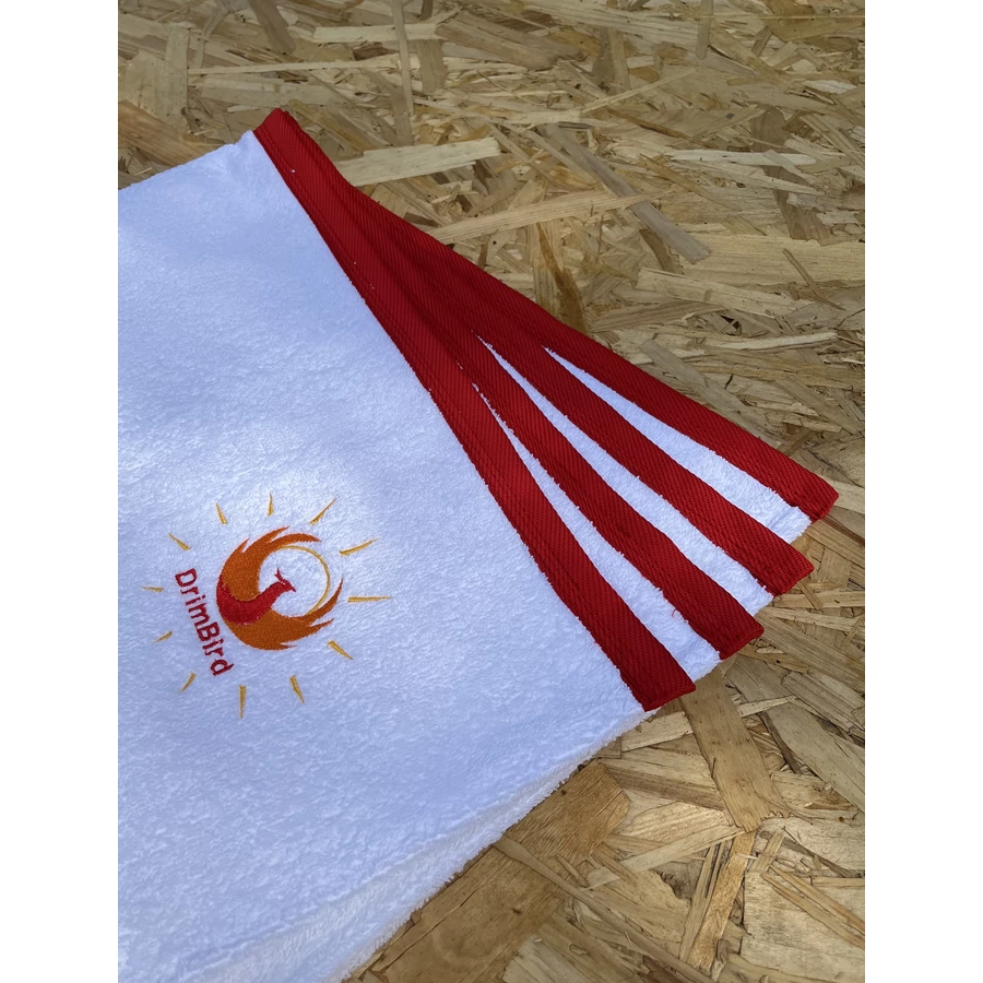 RedBorderOpen (nyitott fehér pamut legyezős törölköző, piros szegéllyel)