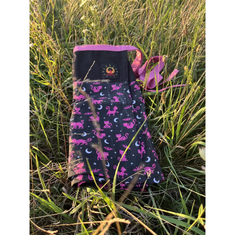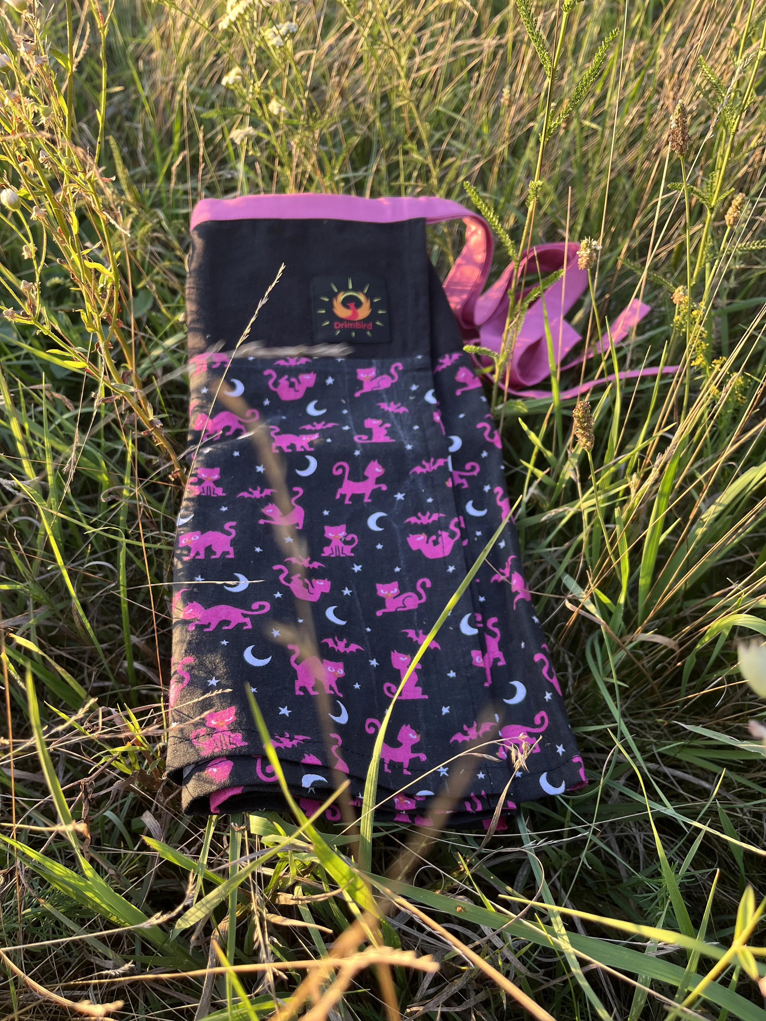 PinkCat (rózsaszín cica/denevér mintás, fekete pamut szoknya)