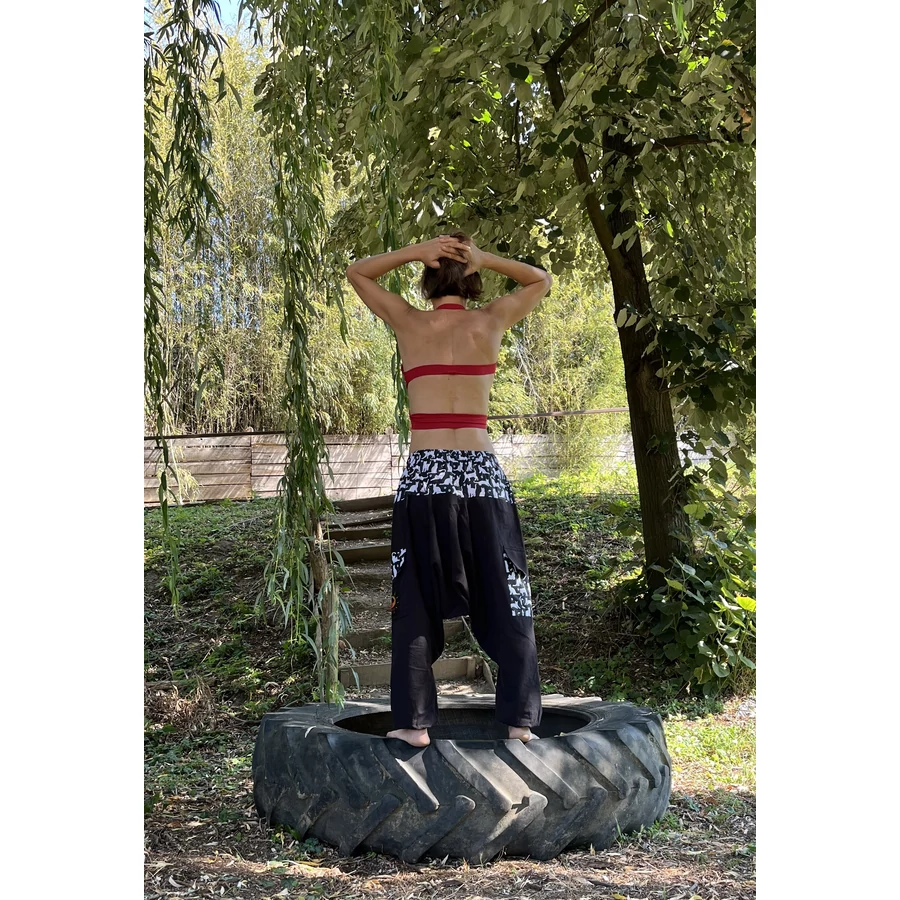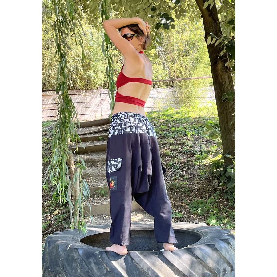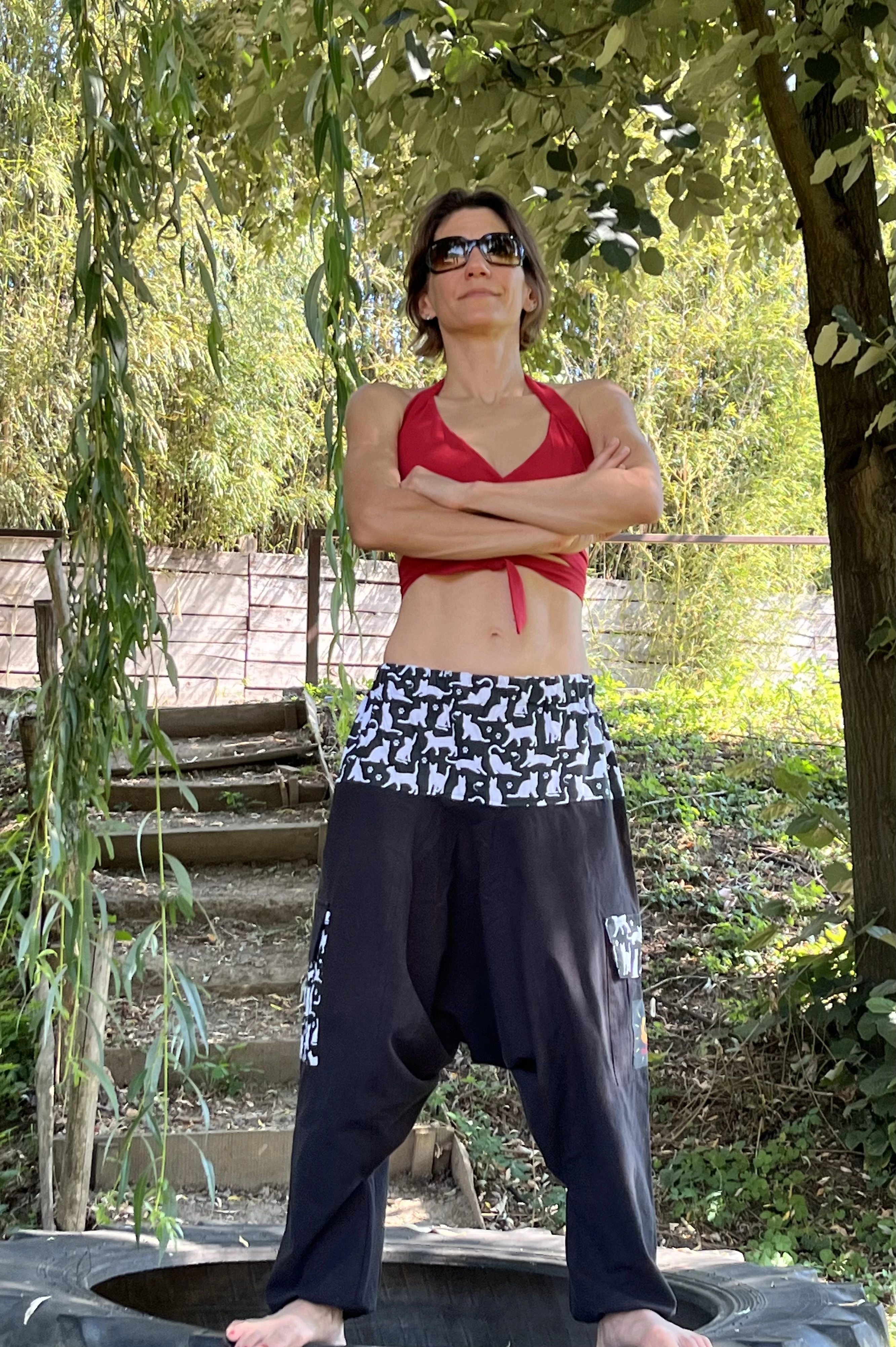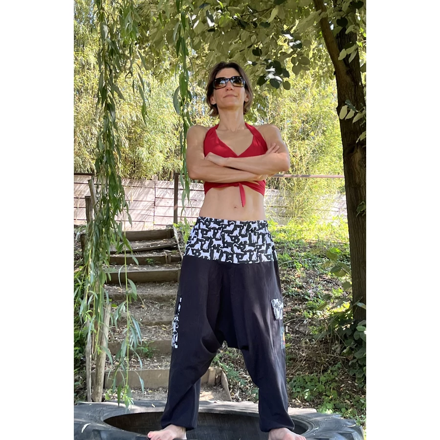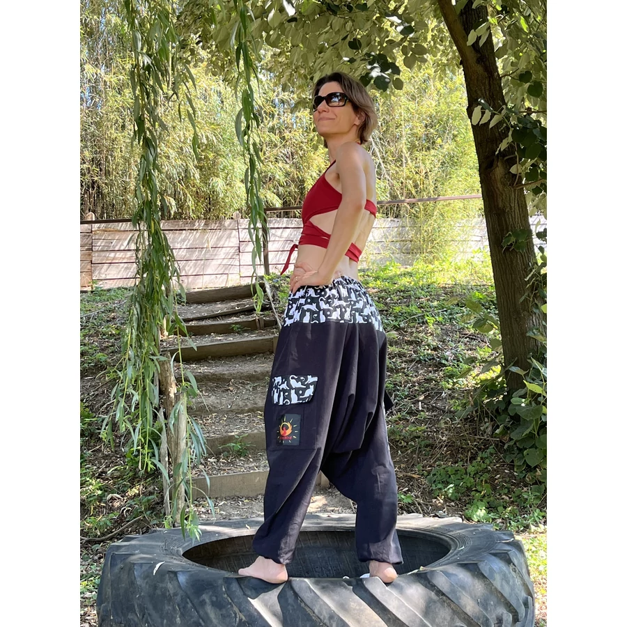 WhiteCat (fehér cica mintás, fekete női pamut nadrág)